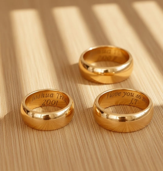 Engraved Name & Date Message Ring The Engraved Name & Date Ring is a custom-made piece of jewelry that features a name engraving on the outside and a date hidden inside. Perfect for:Birthdays, anniversaries, Valentine’s Day, bridesmaids, or just because. Features: Custom engraved name and date message ring 925 Sterling...