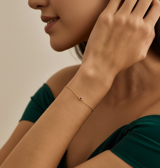 Celebrate your story with our Personalised Birthstone Bracelet, a delicate piece designed for everyday elegance. Why you’ll love it: Customised with your birthstone Minimal & lightweight for daily wear Elegant design that never goes out of style Product Details: Material: 925 Sterling Silver / Brass Stone: Birthstone (write month in...