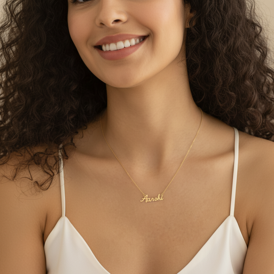 Personalised Name Necklace, crafted in a beautiful handwritten script that adds a touch of charm and individuality to your look.